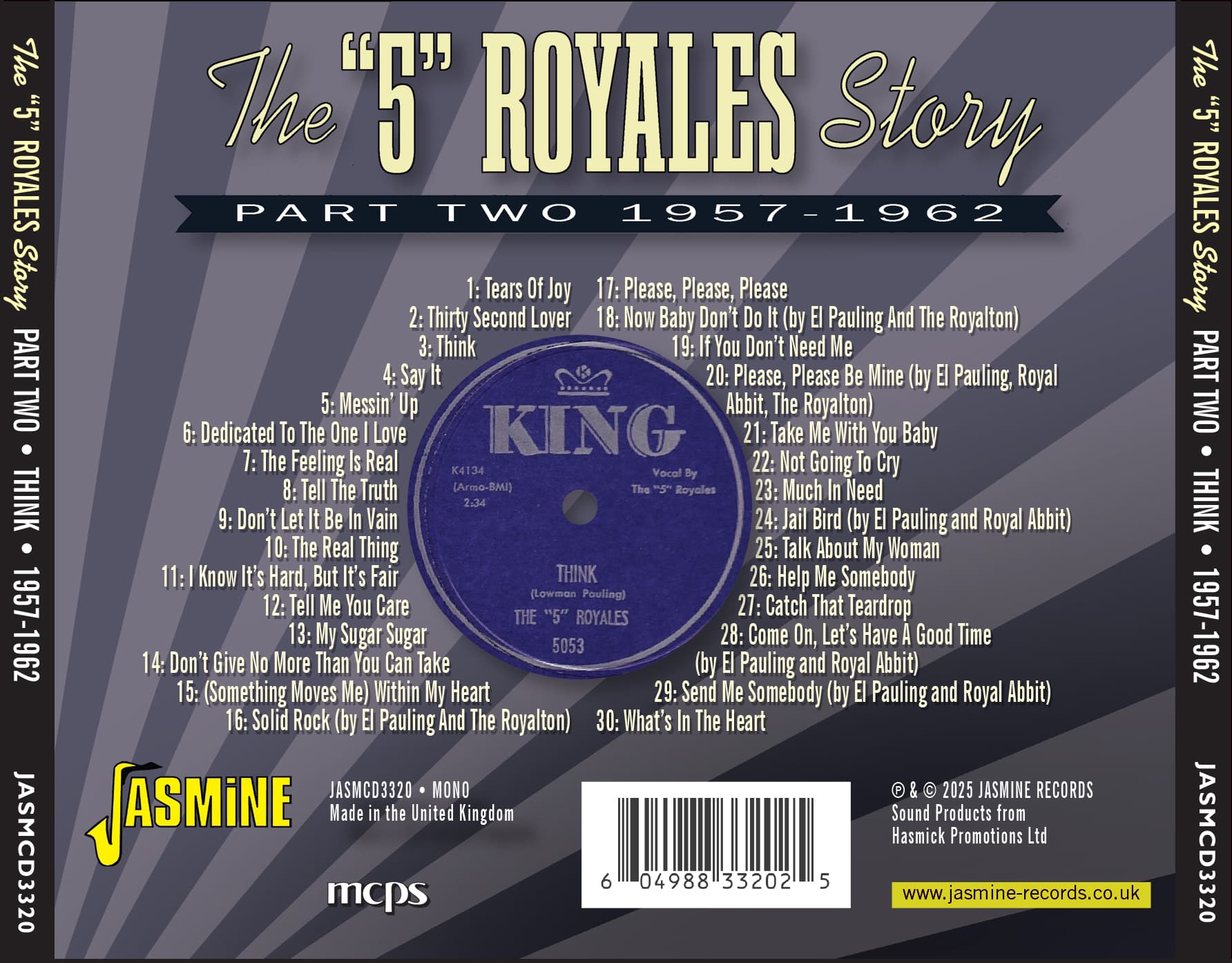 • This is a companion release to “THE “5” ROYALES’ STORY • PART 1, BABY DON’T DO IT, 1951-56” (JASMCD 3313).