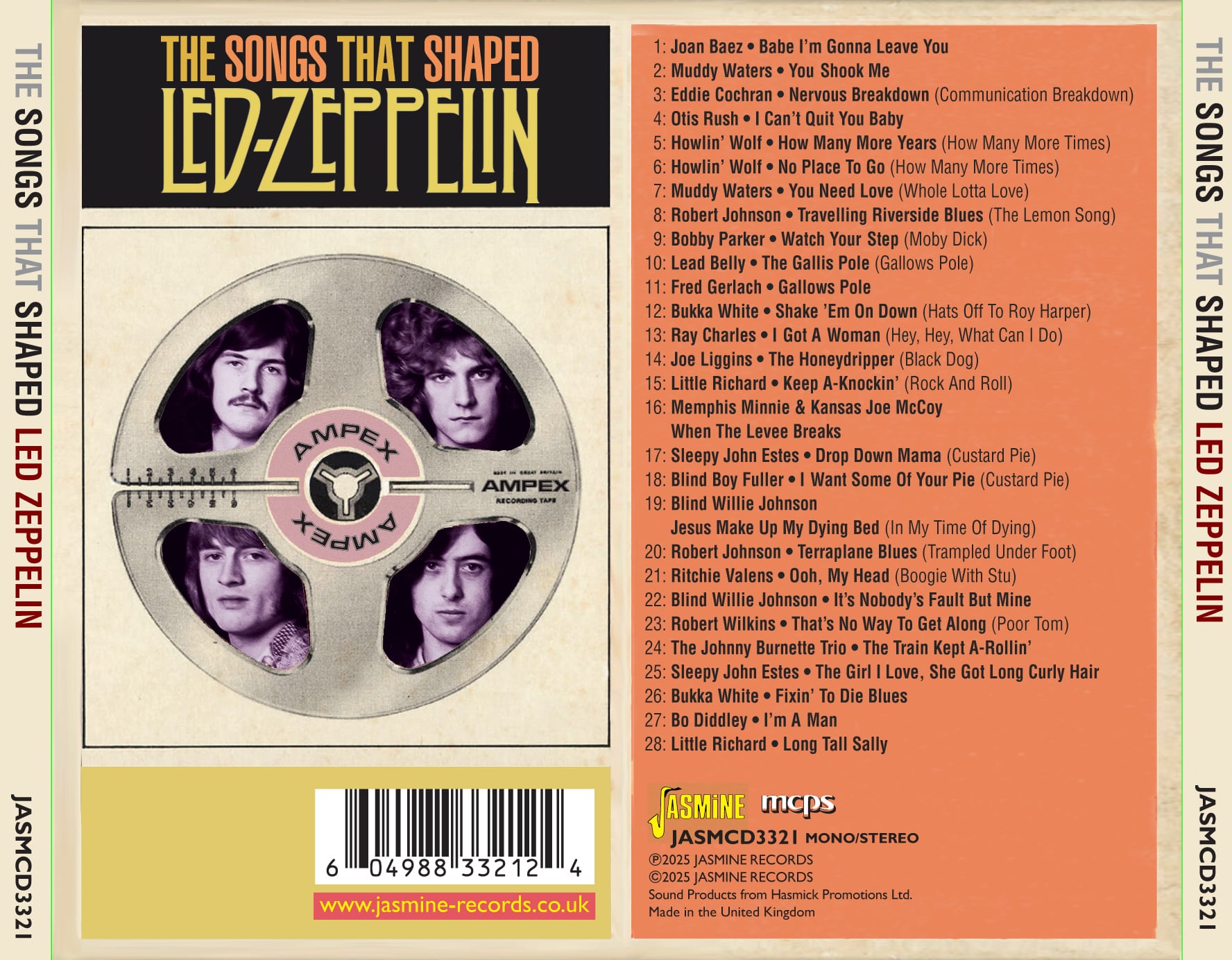 • This compilation presents twenty-eight prime examples of Led Zeppelin’s roots, with the emphasis very much on those Blues icons - Muddy Waters, Howlin’ Wolf, Robert Johnson, Otis Rush, Blind Willie Johnson, Sleepy John Estes, etc - whose tunes they played on steroids.