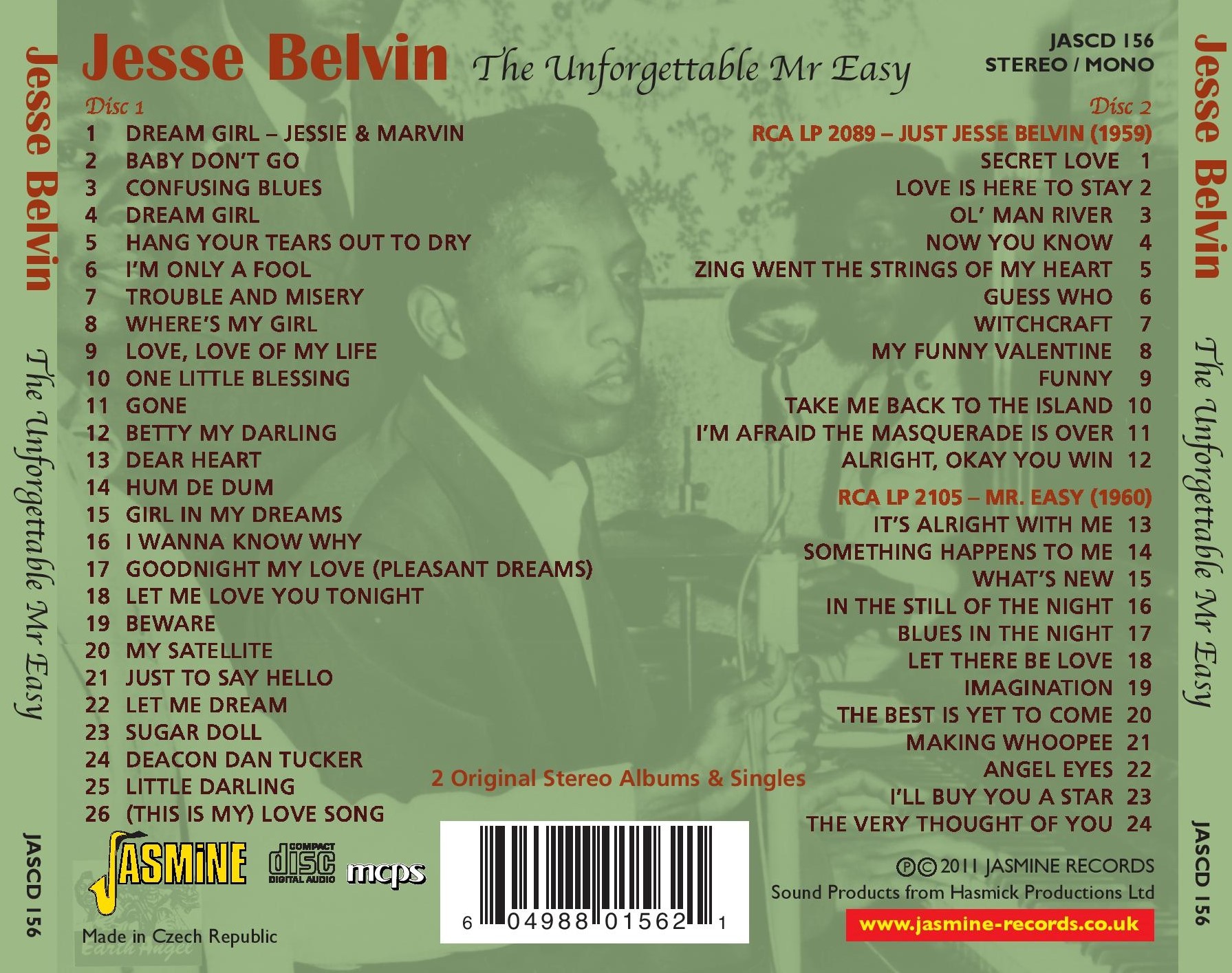 Jesse BELVIN – The Unforgettable Mr Easy – 2 Original Stereo Albums Plus Singles