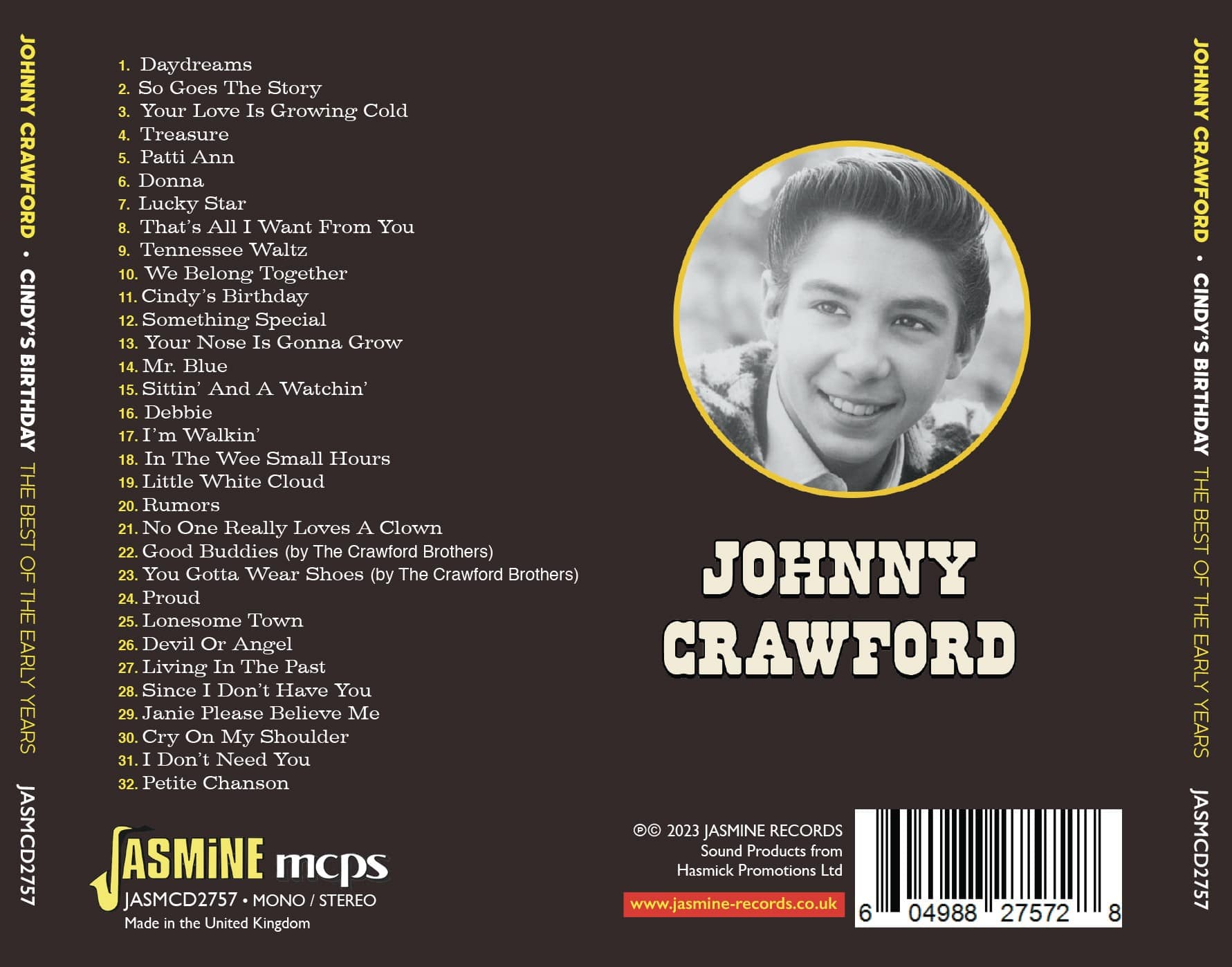 This compilation presents the Very Best of his record career between 1961-62, and includes his biggest hits, ‘Daydreams’, ‘Patti Ann’, ‘Cindy’s Birthday’, ‘Your Nose Is Gonna Grow’, ‘Rumours’ and ‘Proud’.