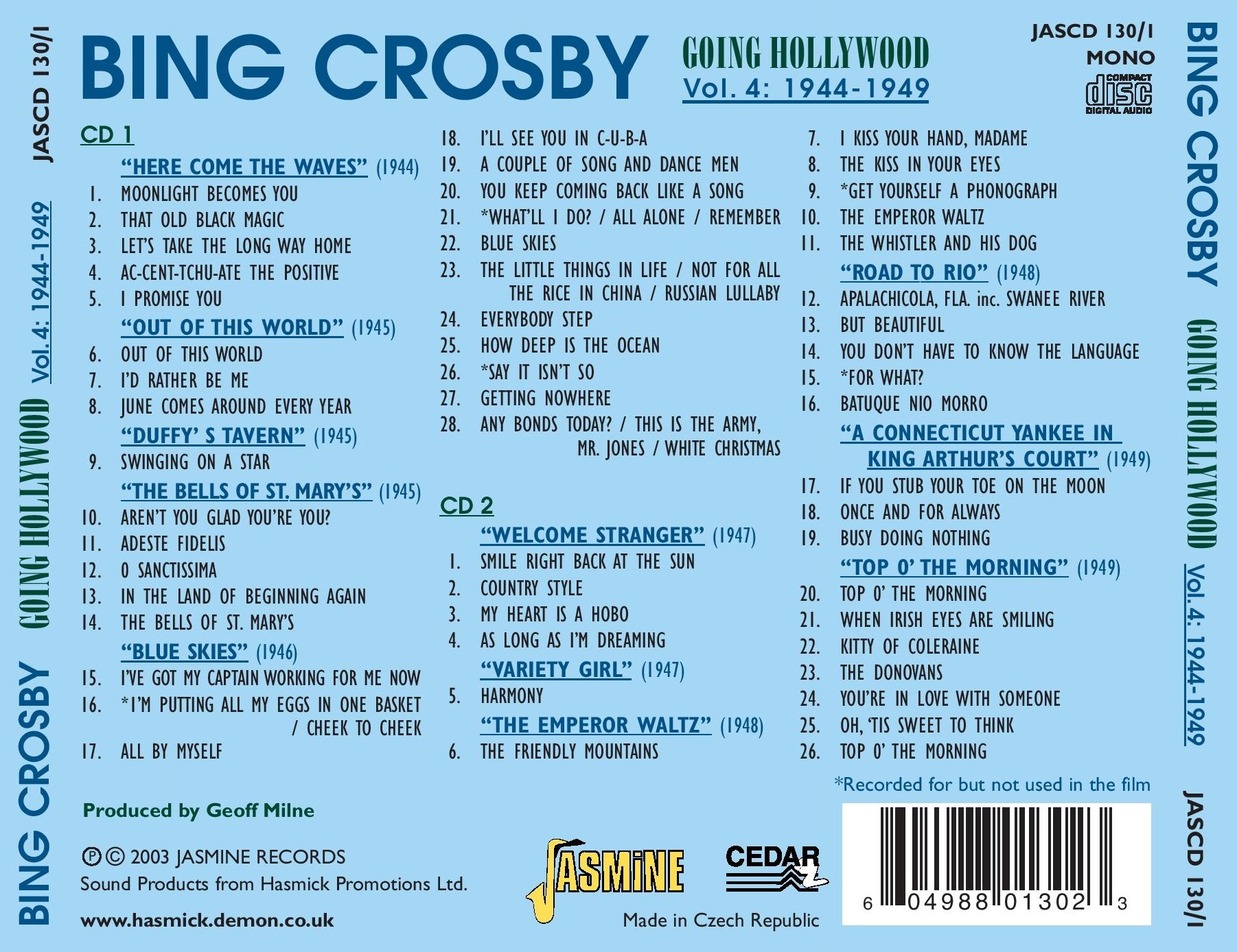 Also available by Bing Crosby JASCD108/9, JASCD113/4, JASCD121/2, JASCD127/8, JASCD318, JASCD336, JASCD392, JASCD651, JASMCD3557,JASMCD3558.