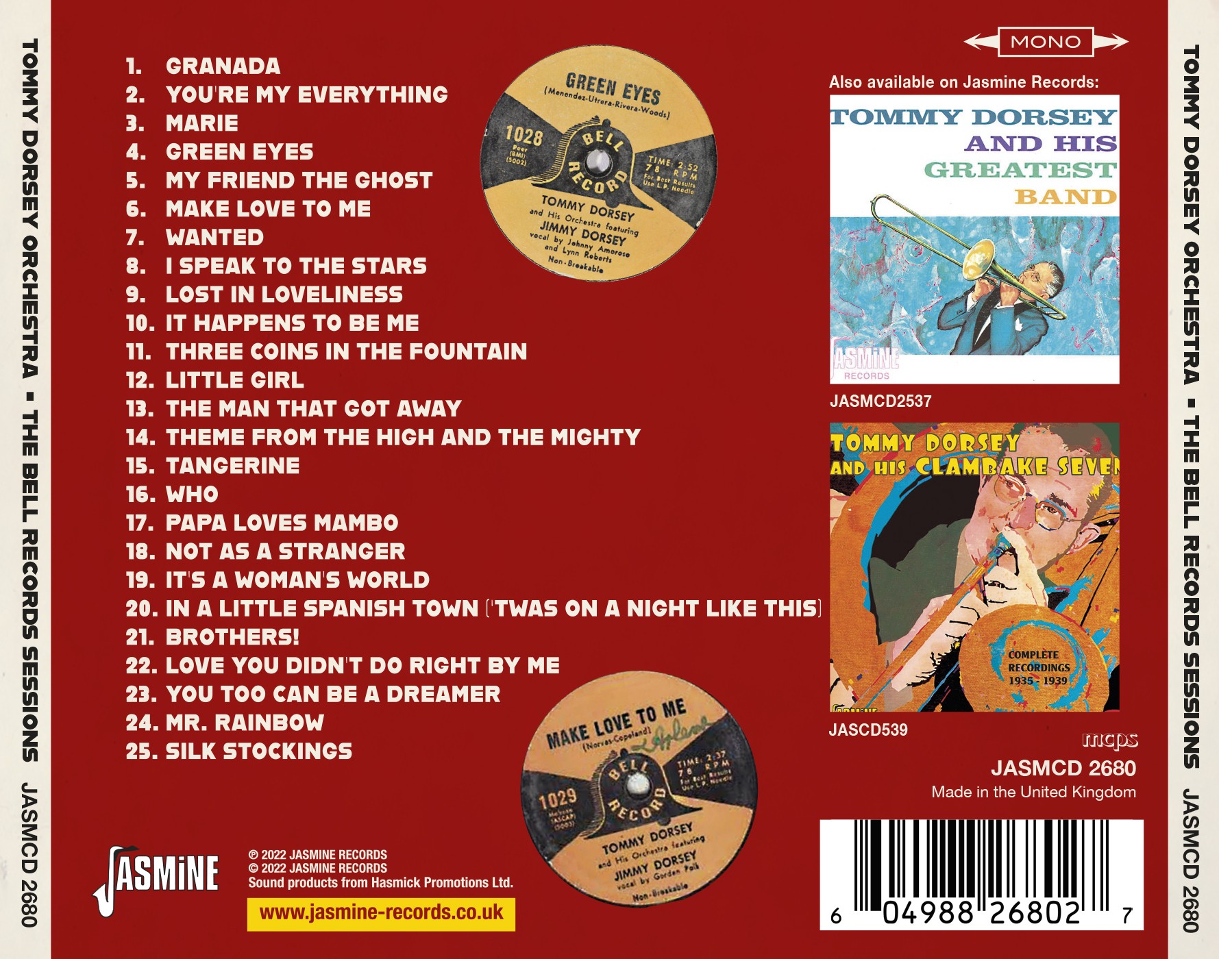 The Bell recordings of Tommy and Jimmy Dorsey are often overlooked. Issued as 7-inch 78's and 45's between 1954 and 1956, for the budget label, the recordings are of great quality in both sound and performance, but apart from a few compilations in the 1960s they have not been re-issued since. The recordings captured new songs as well as standards and even a duet sung by Tommy and Jimmy themselves.
