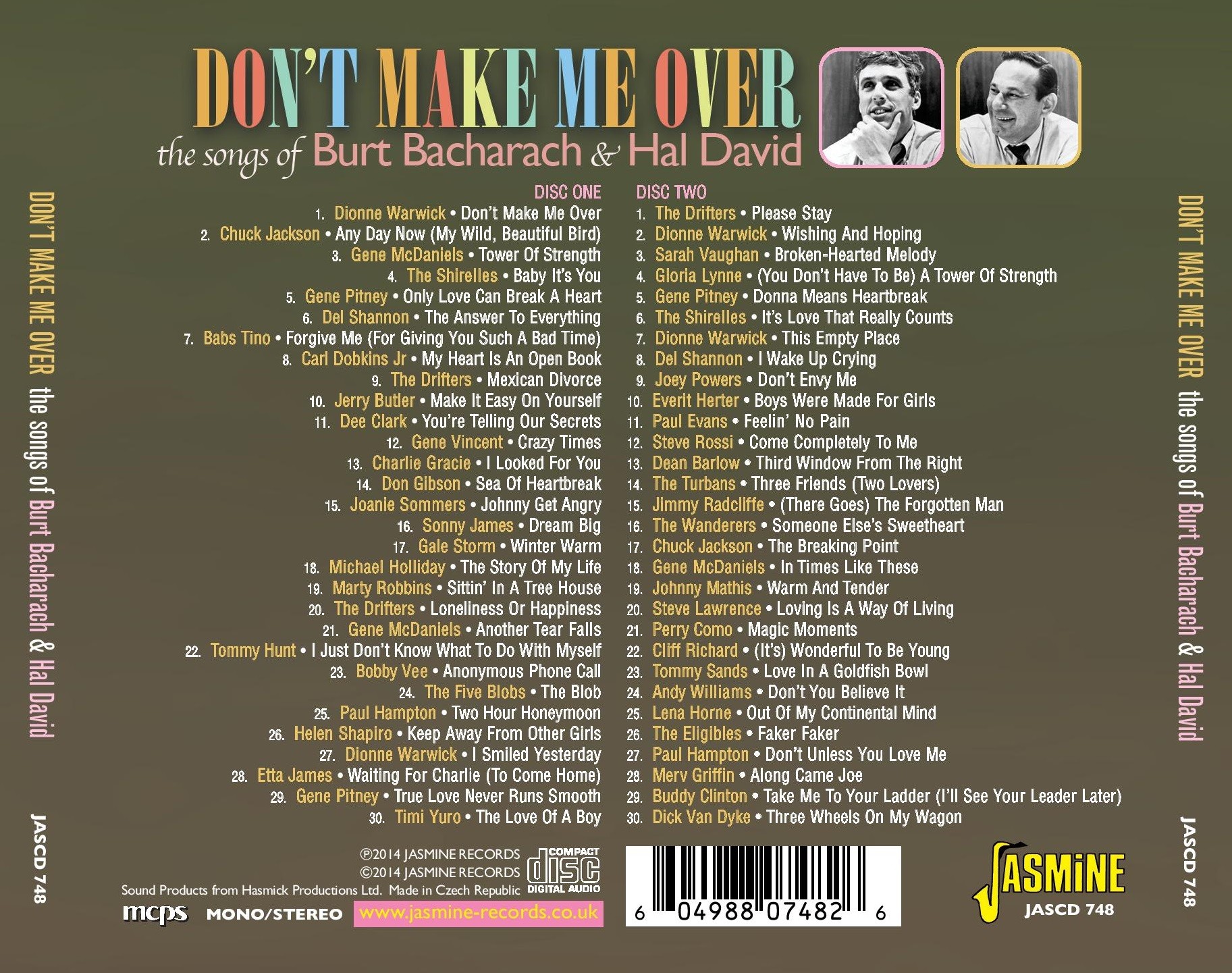 During this period, both Bacharach and David often worked with other writers, including Mack David (Hal's brother), Lee Pockriss, Paul Hampton, Sherman Edwards and Bob Hilliard, who all feature as co-writers on this set.