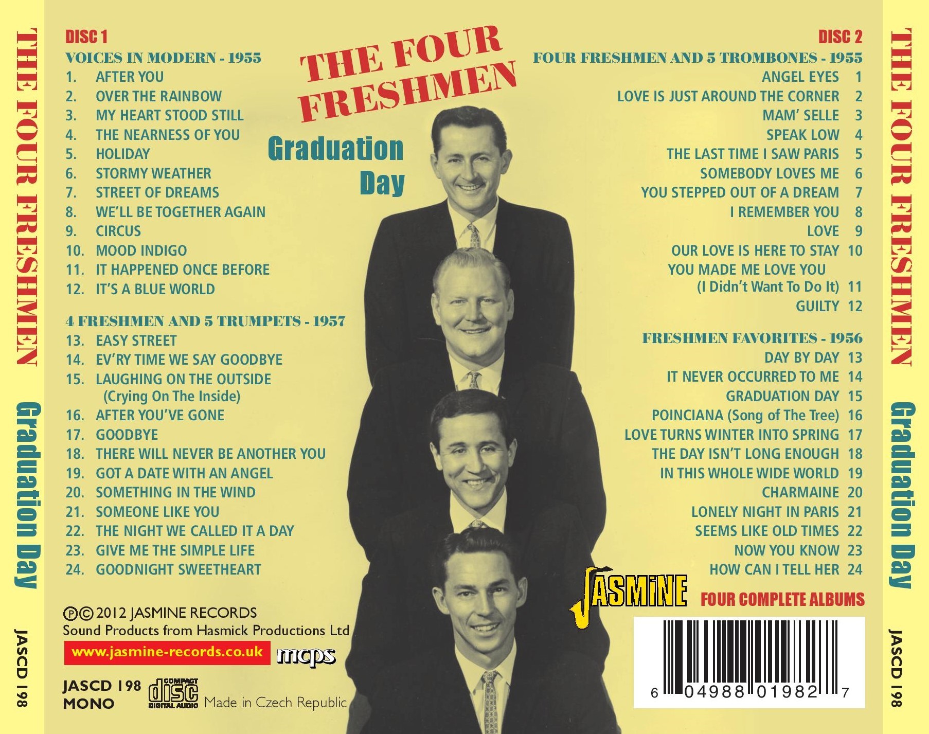 This set features their 4 biggest selling and best known LPs: Voices in Modern, 4 Freshmen and 5 Trumpets, Four Freshmen and 5 Trombones and Freshmen Favorites.