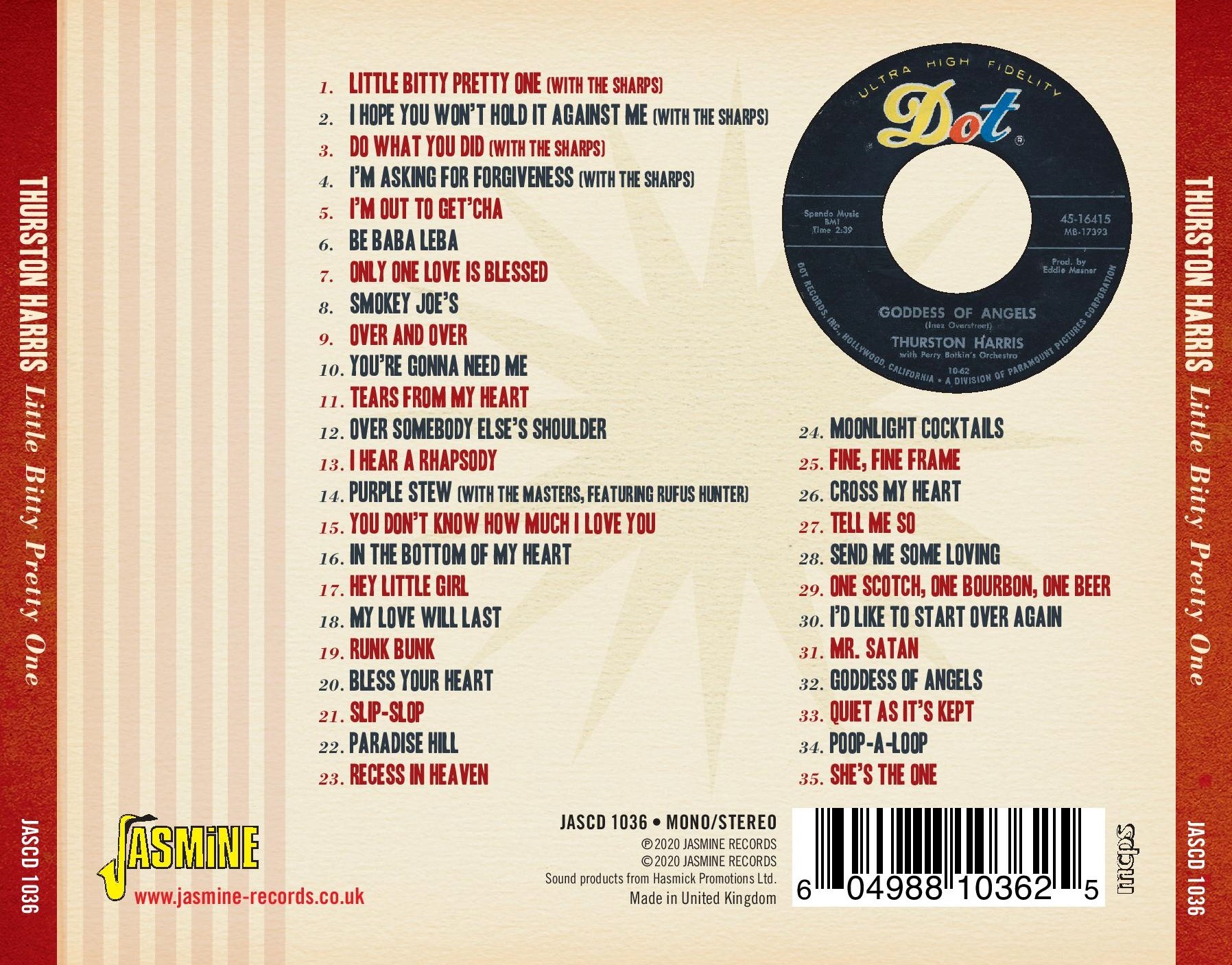 He also registered with sides like 'Do What You Did', 'Over And Over' and 'Tears From My Heart', while his 'Runk Bunk' was famously covered in the UK by Adam Faith, and sides like 'I'm Out To Get'cha', 'Only One Love Is Blessed' and 'I Hear A Rhapsody' were radio and jukebox hits.