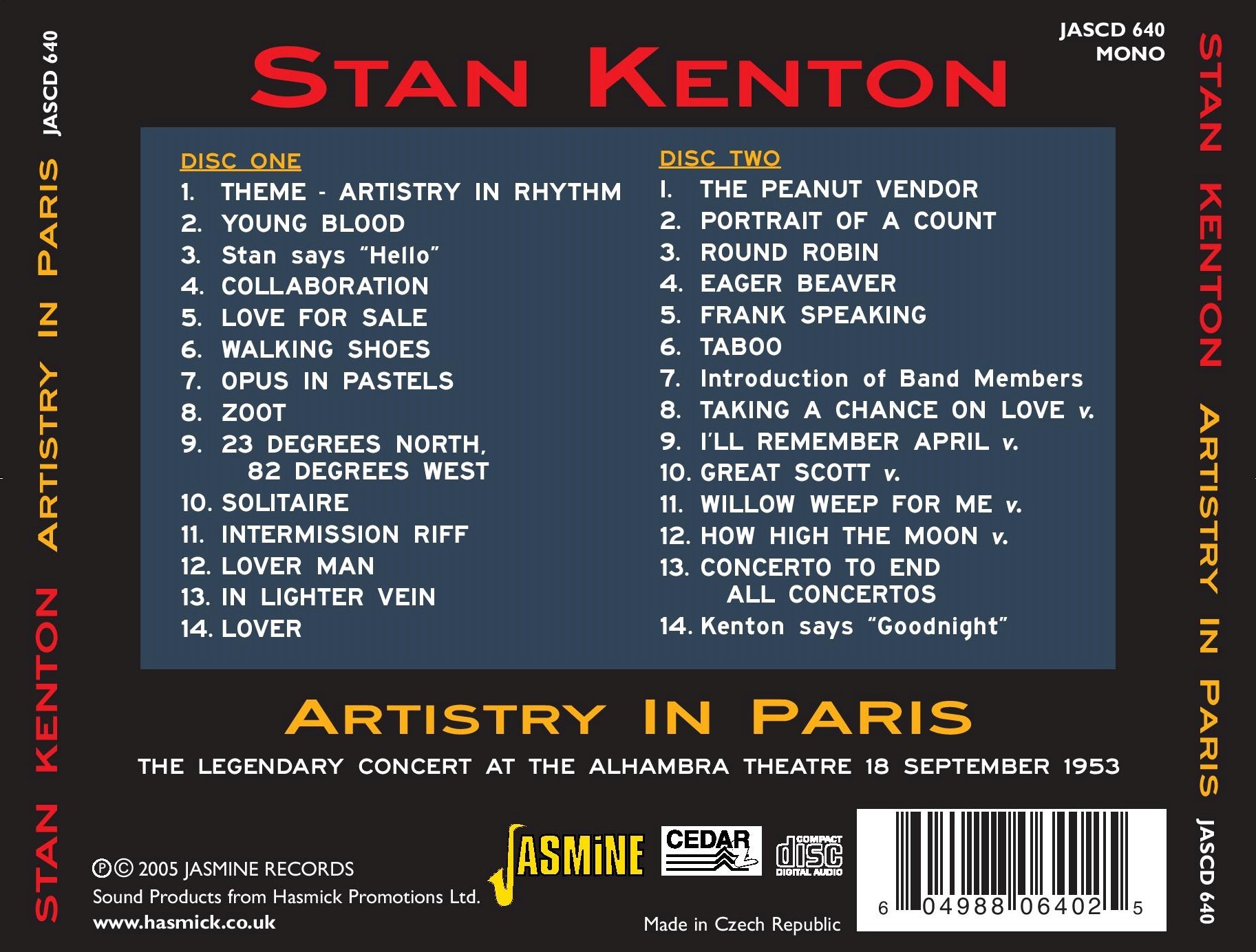 Stan KENTON & His Orch. – Artistry In Paris, The Legendary concert at the Alhambra Theatre, 18 Sept, 1953