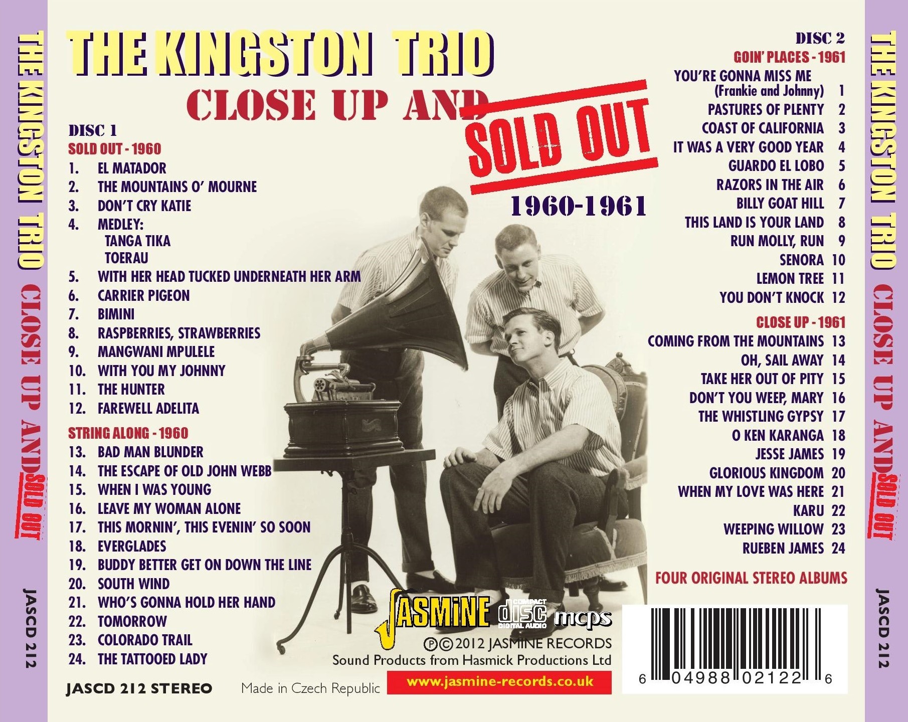 After the success of our previous Kingston Trio release, 'Leaders of the '60s Folk Revolution' - JASCD566 comes, 'Close Up and Sold Out' which features the next two chronological albums from 1960, 'Sold Out' and 'String Along' and continues on disc 2 with two of the three albums they released in 1961, 'Goin' Places' and 'Close Up' all in wonderful stereo.