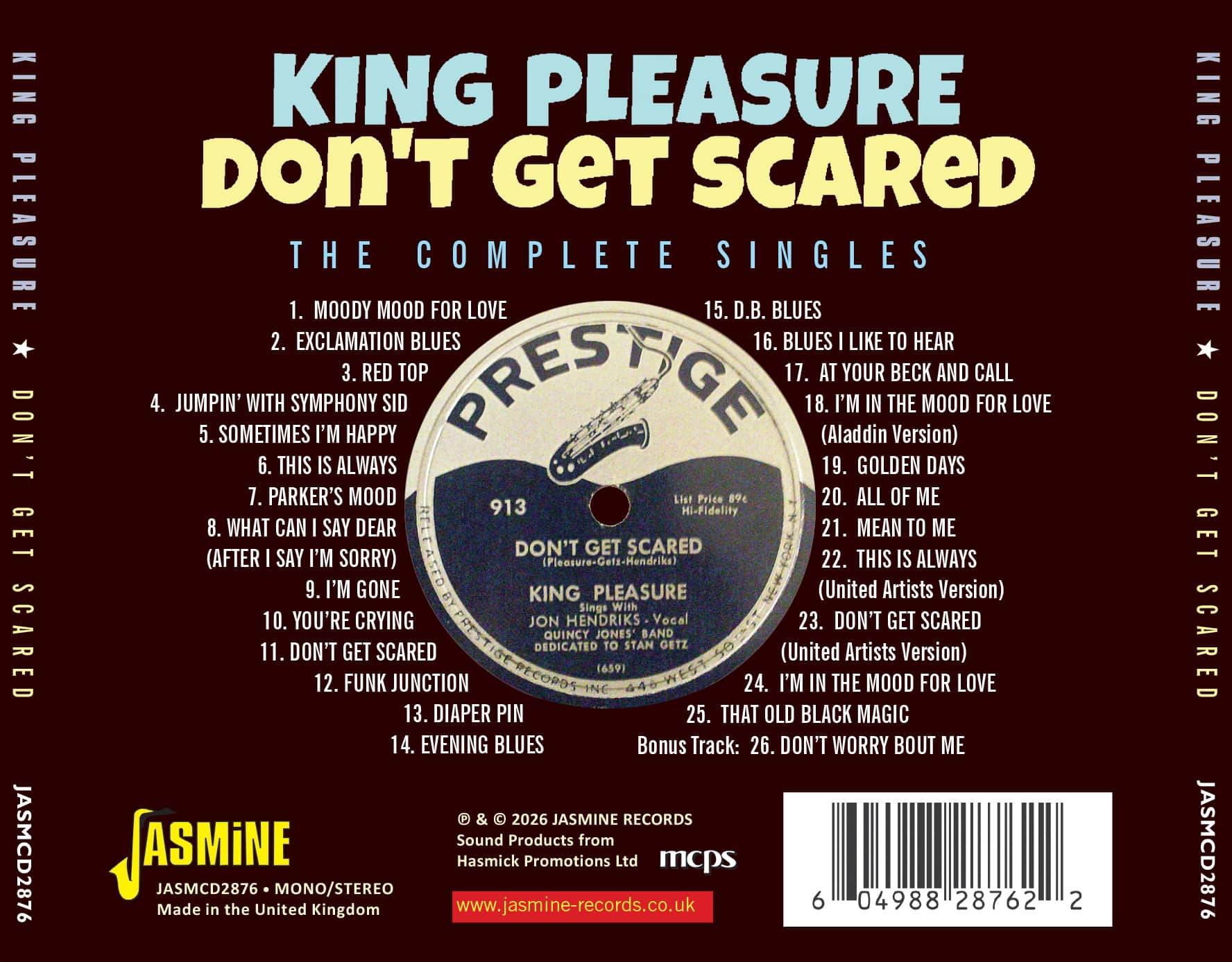 • Don’t Get Scared – The Complete Singles is the definitive portrait of King Pleasure, the singer who transformed bebop improvisation into storytelling song.
