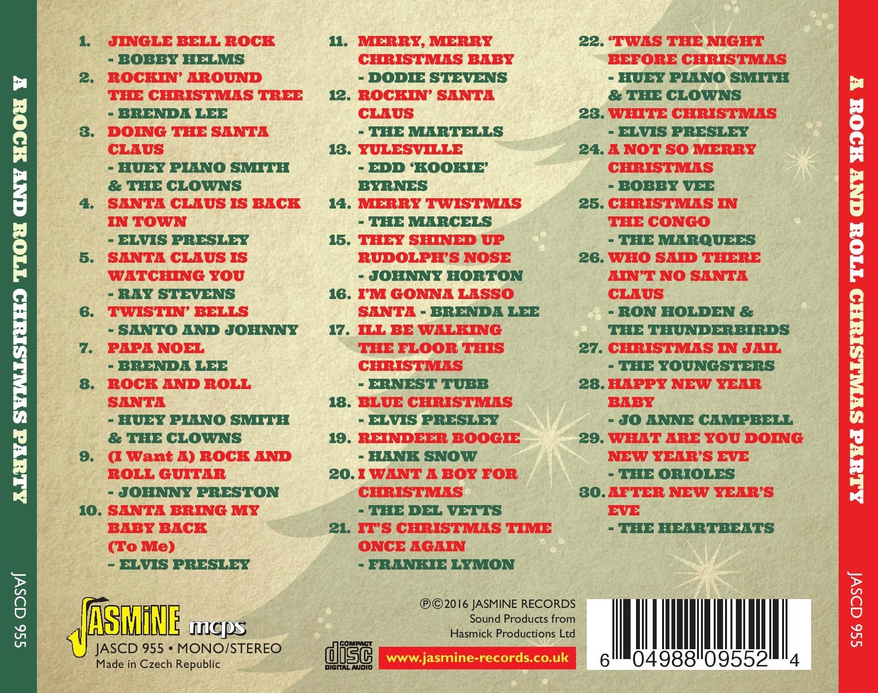 Everything you need for a real Rockin' Christmas party is here on the 30 tracks of this CD. All time classics like 'Jingle Bell Rock', 'Rocking Around the Christmas Tree', 'White Christmas' and lots more. Maudlin, sentimental ballads devoted to the blue side of Christmas rub shoulders with silly novelty discs, doo wop, R&B and pop, in fact every sub-genre of rock and roll gets a look in.