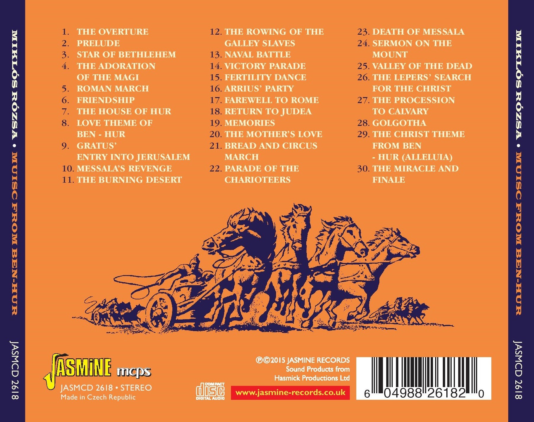 Some 56 years after its release and 11 Oscars later Jasmine are proud to issue this superbly epic and grandiose collection composed by the inimitable Miklós Rózsa. A veteran of the epic film score. Miklos led as he described a 'double life' between his film work and absolute concert music. His concert work was championed by the likes of: Jascha Heifetz; Gregor Piatigorsky, and János Starker and his score for Ben-Hur secured him a much deserved Oscar.