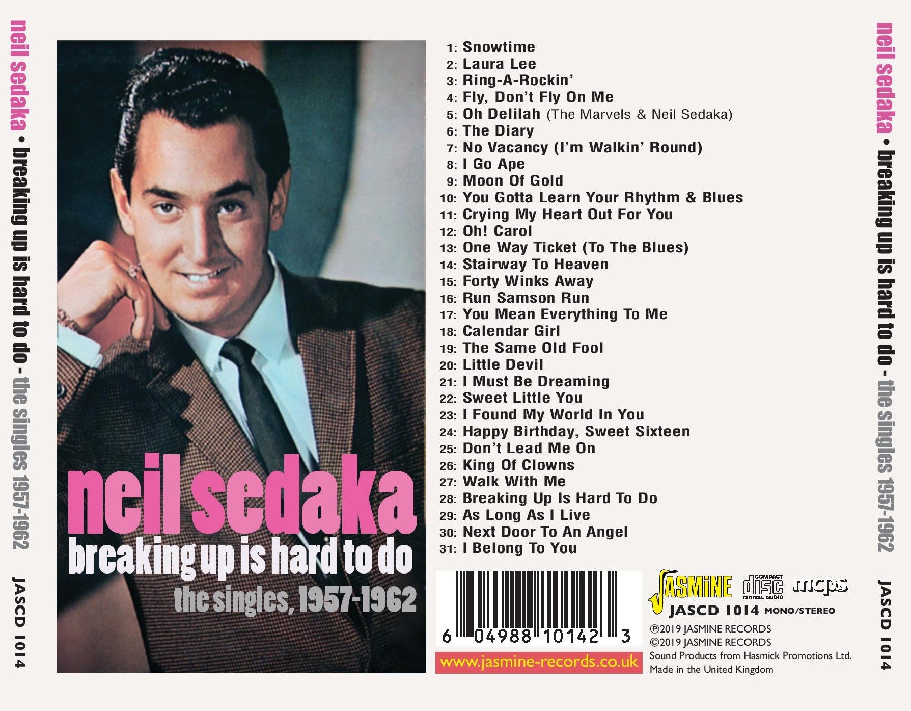 All his early US and UK hits are included herein, viz: 'The Diary', 'I Go Ape', 'You Gotta Learn Your Rhythm & Blues', 'Crying My Heart Out For You', 'Oh! Carol' (his first million-seller), 'One Way Ticket' (a #1 in Japan), 'Stairway To Heaven' 'Run Samson Run' 'You Mean Everything To Me' 'Calendar Girl' (a worldwide #1), 'Little Devil' 'Sweet Little You' 'Happy Birthday, Sweet Sixteen' 'King Of Clowns', 'Breaking Up Is Hard To Do' (his first US #1 record) and 'Next Door To An Angel'.