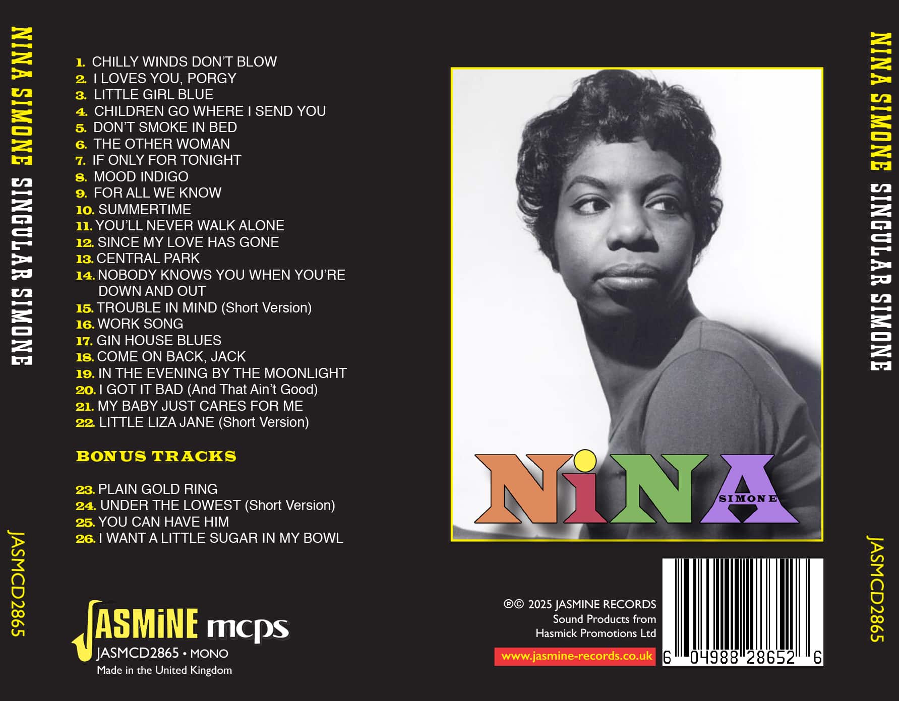 • An earlier 2CD set from Jasmine showcasing Nina’s first LPs has been a consistent seller for Jasmine for a few years, and we are now complementing with a single CD that brings together the a sides of her first dozen singles for Bethlehem and Colpix records, plus a handful of selected B sides, for what we believe is the first multi-label overview of her earliest 45s.
