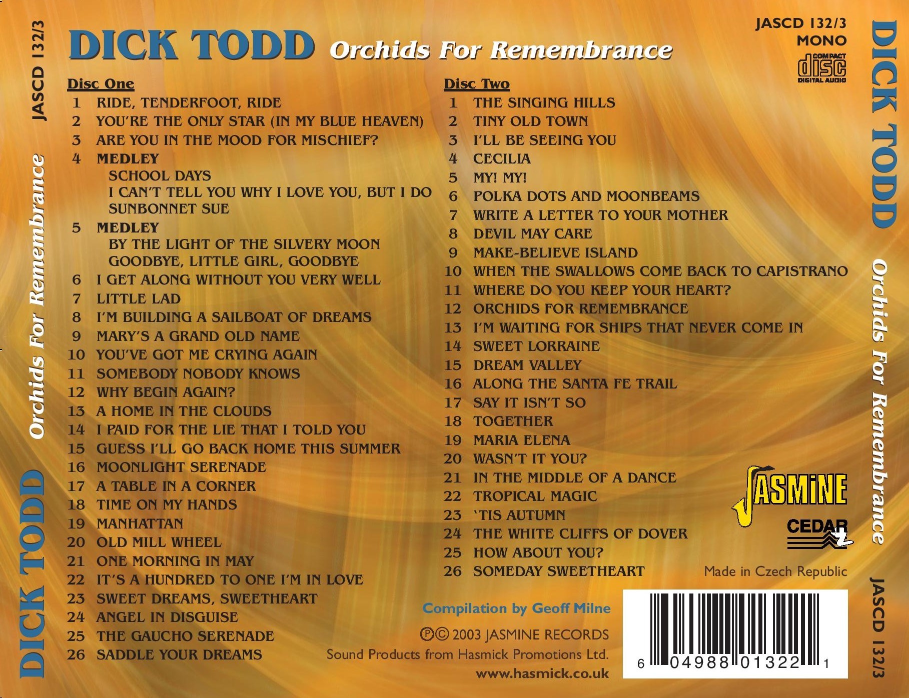 On the "Chase & Sanborn" radio programme of July 4,1943, the three original Whiteman Rhythm Boys were reunited with the great band-leader himself. Reminiscing about their early years together and how they came to meet the so-called 'King Of Jazz', they loosely re-enacted their 1927 audition. Whiteman asked them "Are you guys any good, What are your names?" Hopeful number one replied "Well, I'm Harry Barris, I sing like Bing Crosby." Then from hopeful number two, "I'm Al Rinker, I sing like Bing Crosby too." Whiteman quipped "Well, what about you - you there with the awning?" Came the reply "I'm Bing Crosby, I sing like Dick Todd". It's doubtful if Todd ever received a better compliment coming, as it did, from the best known and most popular songster of the period.