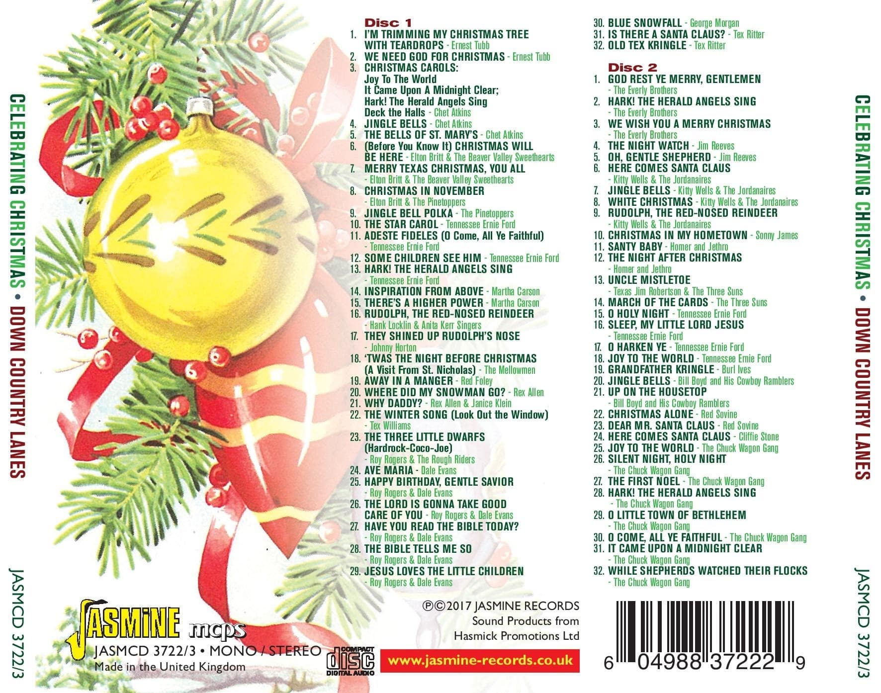 Classic Christmas titles and rarities are featured by Ernest Tubb, Elton Britt, Johnny Horton, The Everly Brothers, Rex Allen, Red Sovine, Martha Carson, Red Foley, Homer & Jethro, Burl Ives, Chet Atkins, The Mellowmen, and more.